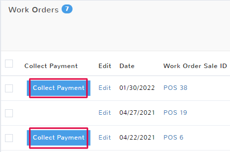 You can tell at a quick glance which work orders require payment. When you navigate to the Work Orders page, you’ll see in the queue the work orders marked as Collect Payment.