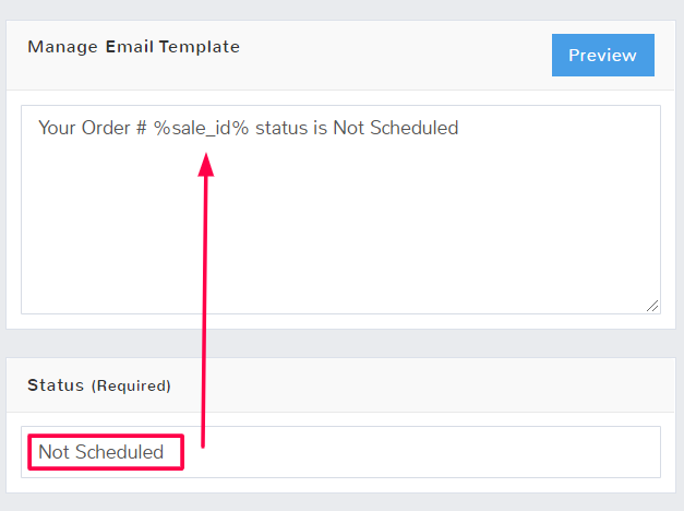 If you already have an email template for that status, you will see it in the Manage Email Template section. You can change and update the message by editing the section and selecting Save.