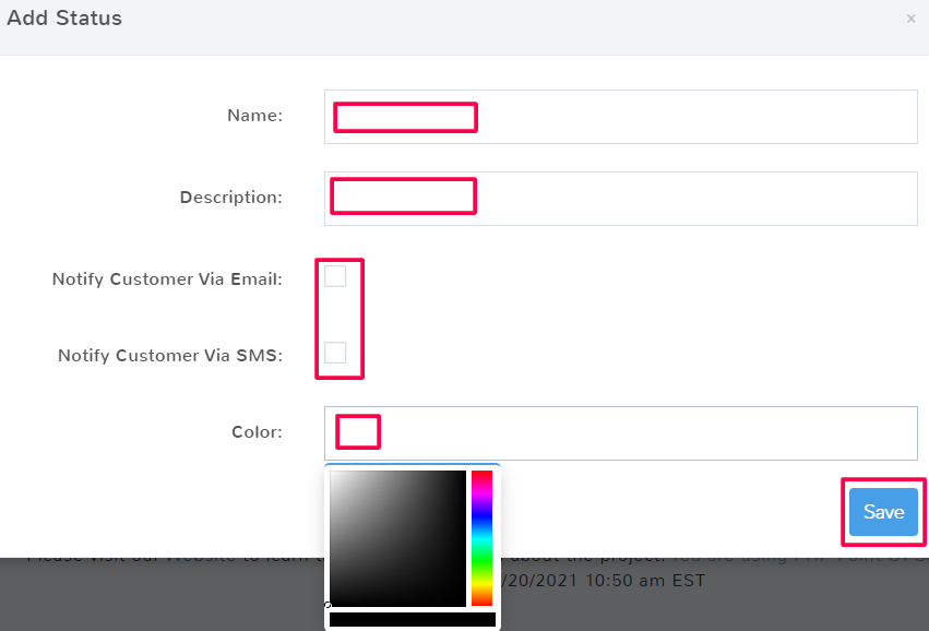 Click the Color field to select a color from the dropdown. Depending on your settings for delivery calendar views, the status color maybe how the delivery displays on the calendar.
