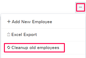 In the top right click the ellipses (…) to see more options and select Cleanup old employees. This will permanently erase the employee data for any previously deleted employees. This means these employees can no longer be made active again, or have their information changed.