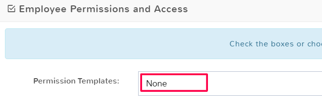 The easiest way to handle permissions is to create a Permission Template based on an employee’s role and apply that template to new employees. You can select a permission template from the field dropdown in an employee record. More information can be found about Permission Templates here.