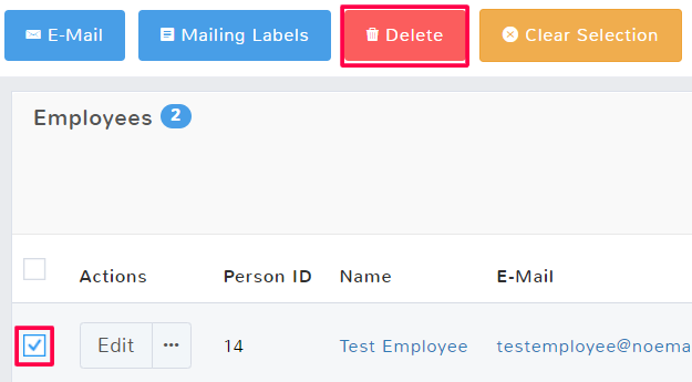 Once the page opens, locate the employee you want to delete and click the checkbox to select their row. Above the employee list, there will be an option to Delete the employee. You can also select multiple employees if you want to delete more than one.