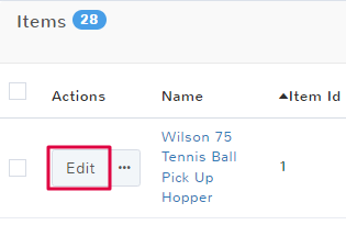 Either search for or scroll to find the item that you want to edit. Click Edit in the Actions column for the desired item.