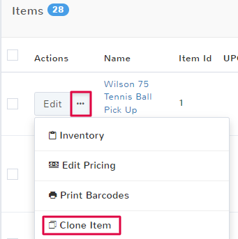 If you need to make a new item that is similar to an existing one, you can simply clone an item and all of its information. To clone an item, click Inventory in the left menu and then select the Items feature.