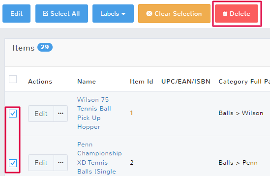 To delete items, click Inventory in the left menu and then select the Items feature.