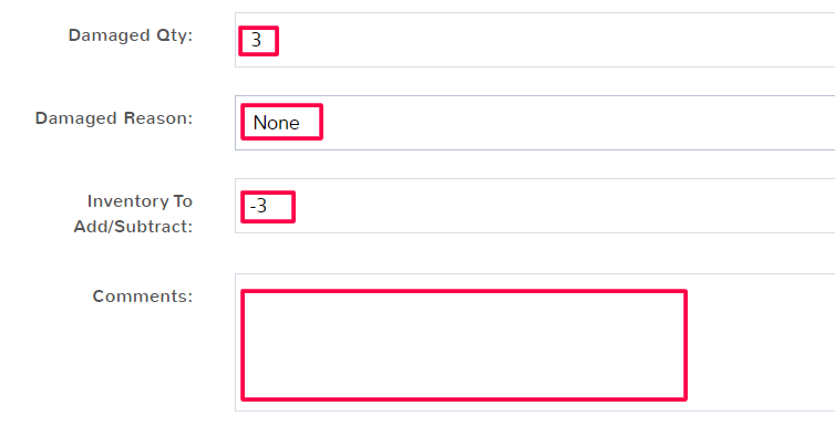 Any Damaged Quantity will automatically be subtracted from your Current Quantity of inventory. There will also be a drop-down field for you to select the damaged reason so that you can better track cases of damage.