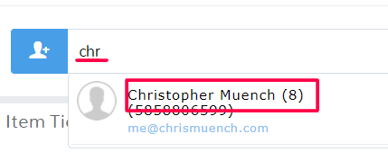 Click inside the Type customer name… field and start to enter either the first or last name of a customer. Once you start typing, matching customers will display below for you to select. Click on a customer to add them to the sale.