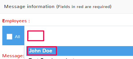 On the Message information page, you can select the employees you wish to contact and fill out the message you want to send.