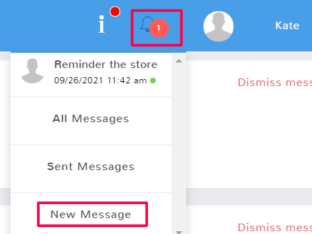 A shortcut to sending a new message can be found in the top right of the system menu. Click the bell icon to see all message options and select New Message to jump to create a new message.