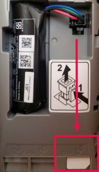 Flip the device upside down and remove the back cover. Insert the SIM card in the bottom right as highlighted below.
