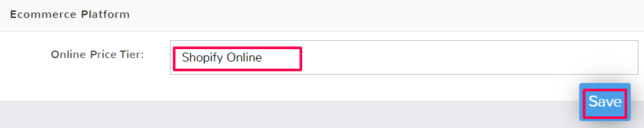 Scroll down to Ecommerce Platform. Click Online Price Tier and select the tier you want from the dropdown.