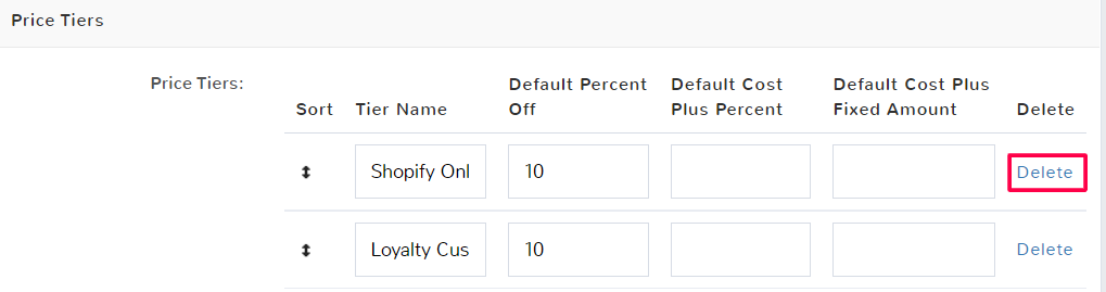 Note: Deleting a tier cannot be undone and will remove the tier from all items as well as from any customers or eCommerce setup you may have applied that tier to.