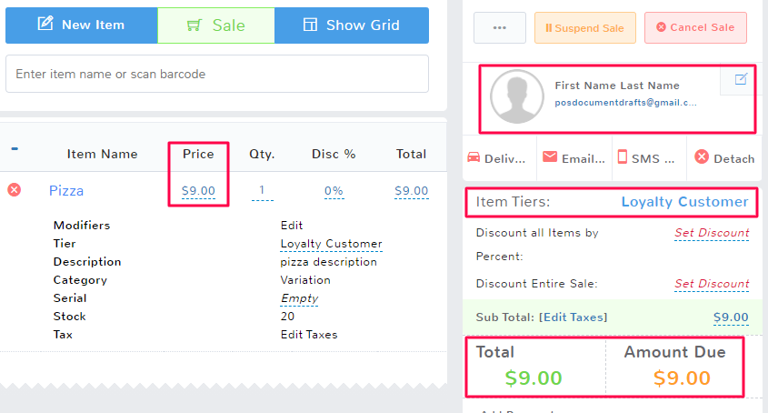 When a customer is added to the sale, the price will automatically decrease by 10% as shown below.