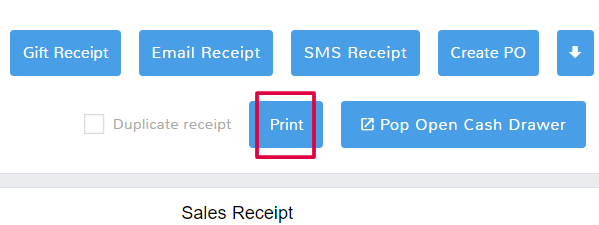 This will open up the Sales Receipt page. In the top right there is the option to Print the receipt. There is also the option to Email Receipt or send the receipt via text with SMS Receipt.