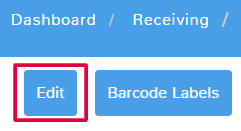 Located in the top left of the menu, the Edit option allows you to make changes to a completed receiving.