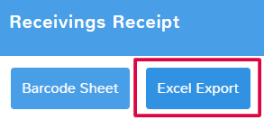 If you want an excel sheet containing the information on the receiving receipt, simply click Excel Export in the top menu. The file will automatically download to your device. The export will contain the basic item and price information from the receipt.