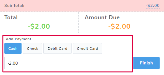 When you’re submitting a return, it’s assumed that you will be getting a credit or refund of your money. Record what method you will be receiving money for the returned items. The money amount should show negative because the amount is being removed from your purchase history.