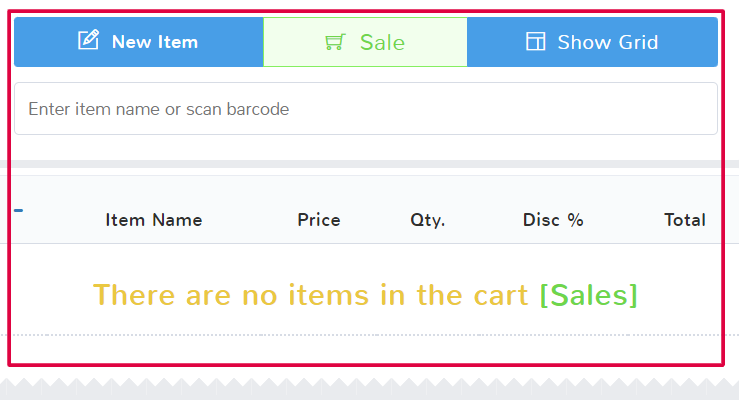 Once you are on the sales main page, there are three main sections for you to fill out the information, the item queue, the customer information, the price section, and the payment selection.