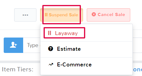 To suspend a sale, click Suspend Sale and then select Layaway.
