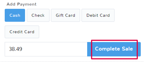Once you have finished a sale and all the necessary information is entered, click Complete Sale in the payment section.