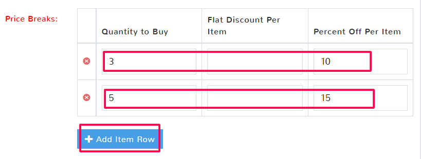 There can be more than one price break for an advanced discount. The Quantity to Buy is the number of an individual item that must be purchased in order for the Flat or Percent discount to be applied.