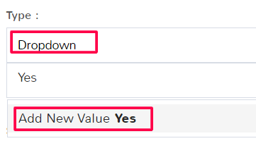 Dropdown – This allows you to create a dropdown selection to choose from. Once you select dropdown, a new field will populate below where you can enter the dropdown values. Type the value you want to be displayed in the dropdown, and click Add New Value to create it.